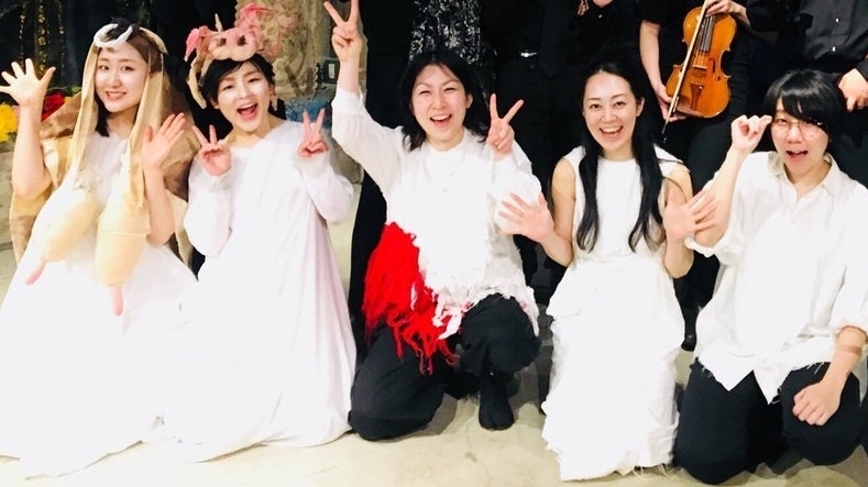 左から上埜すみれ・相沢葵(Theatre Ort)・中込遊里・宮川麻理子・清水いつ鹿と申します。