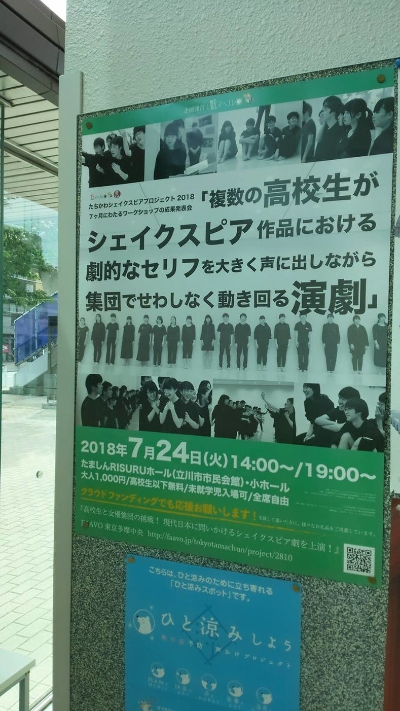 7月24日火 「複数の高校生がシェイクスピア作品における劇的なセリフを大きく声に出しながら集団でせわしなく動き回る演劇」ポスター!