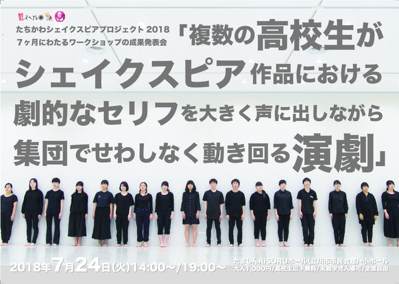 「複数の高校生がシェイクスピア作品における劇的なセリフを大きく声に出しながら集団でせわしなく動き回る演劇」