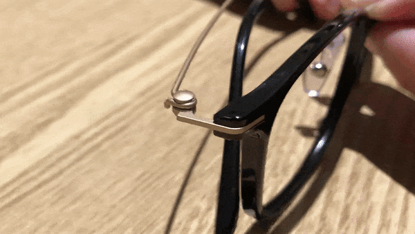 一般的な片側のみにねじを結合する方式ではなく、パイプねじとボルトを組み合わせることで、より安定してテンプルを開閉できるように設計しました。