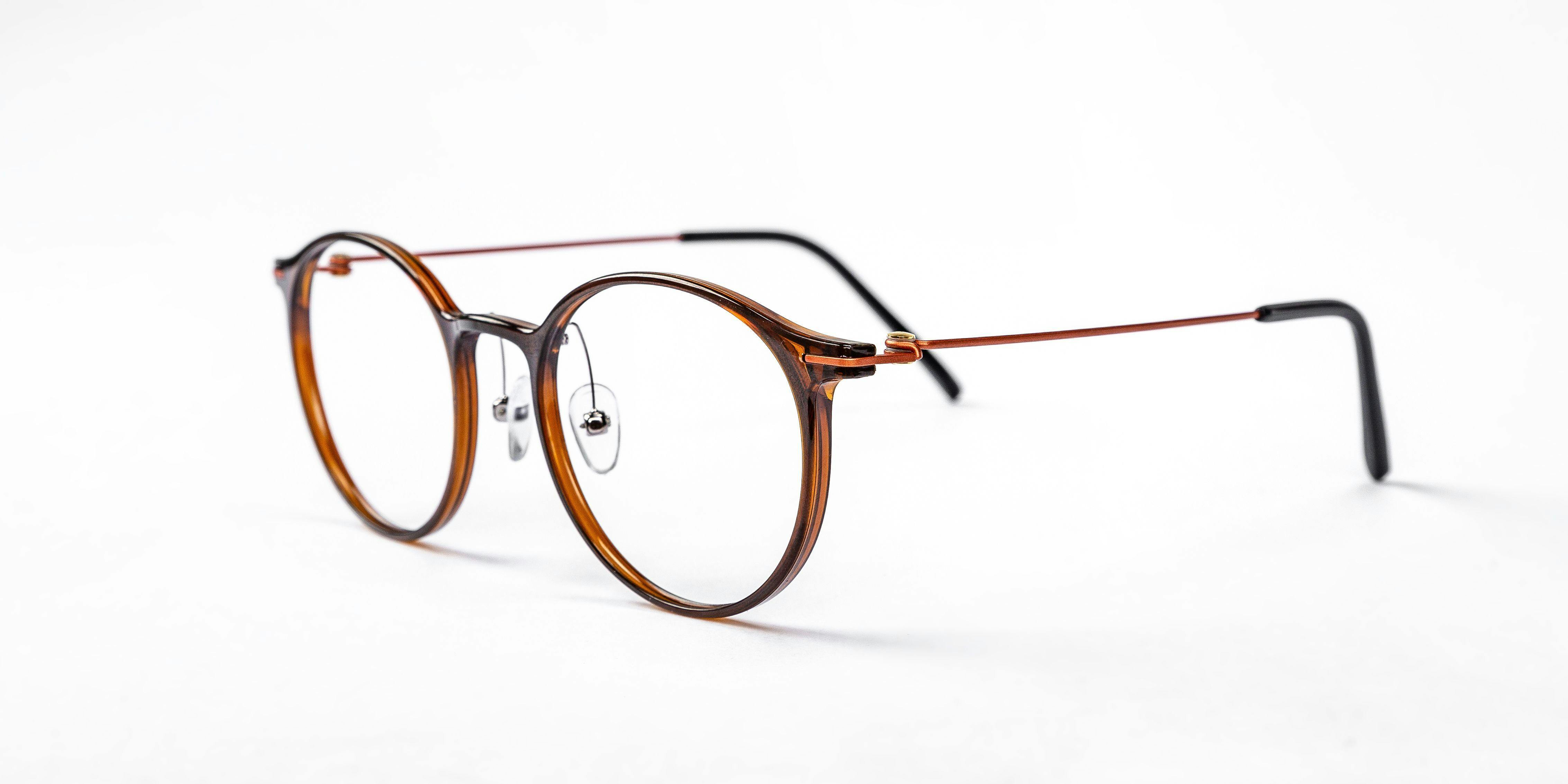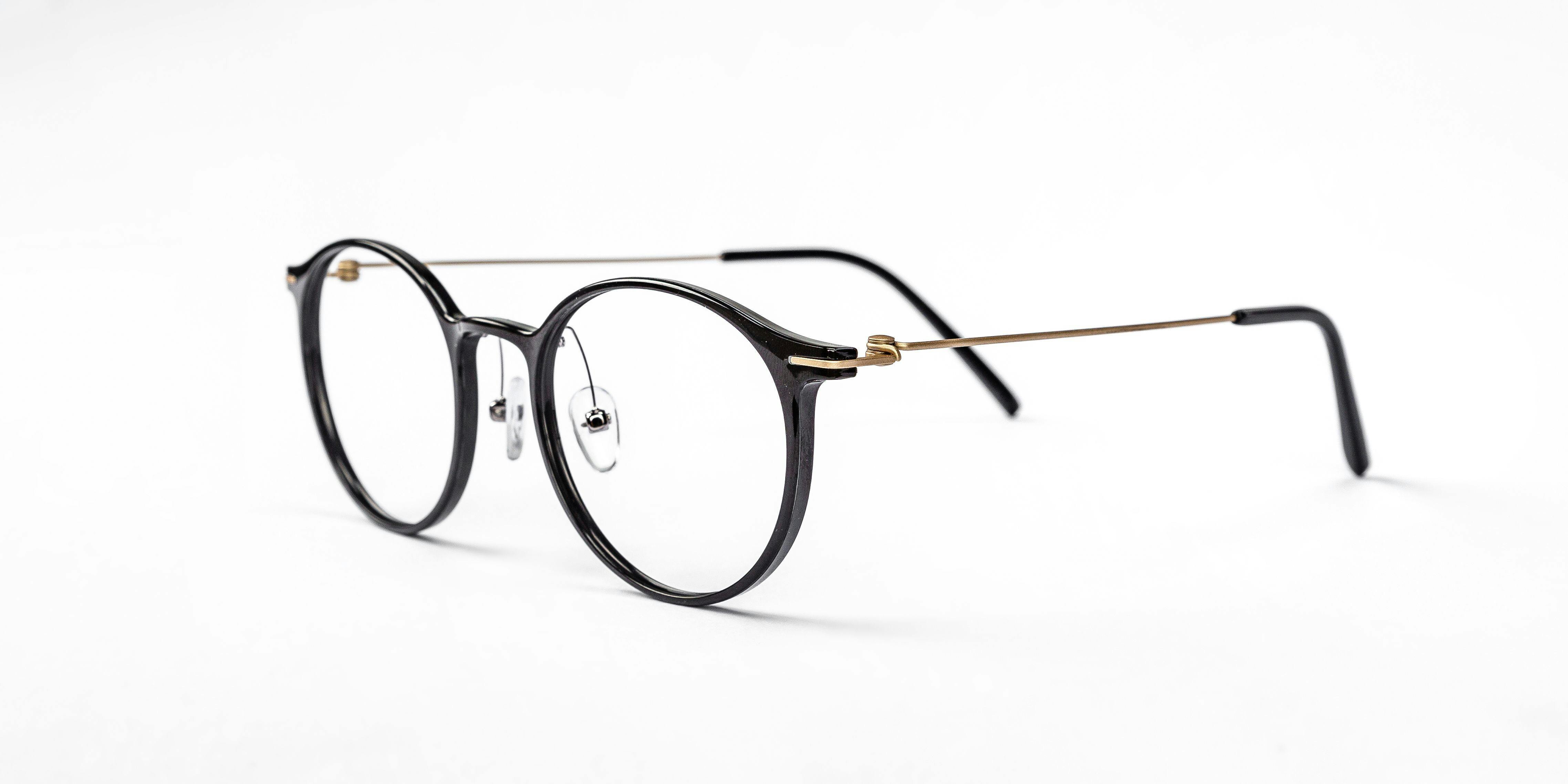 丸い形のフロントと鋭い線のテンプルの組み合わせは、繊細で柔らかな印象を与えます。厚みのあるフロントと細いテンプルのアンバラストさが魅力的なモデルです。