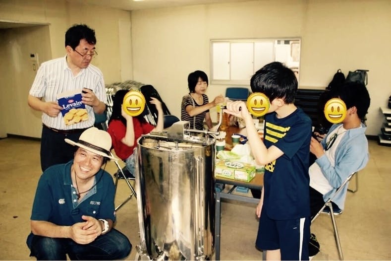 7月7日(土)になりますが、NPO法人Kiitos(キートス)に通う子ども達を採蜜会に招待しました。様々な環境で育っている子ども達がいると思いますが、私と同じようにみつばちの元気な姿を見て、そして美味しい蜂蜜を食べて元気になってもらえたらという思いから、昨年から「出張みつばち講座」とともに行っています。今年は採蜜会に招待することができました。
