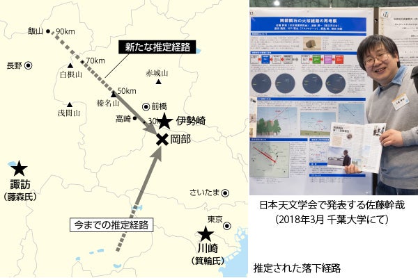この結果、火球経路は北西ないし西北西方向から飛来したものと結論付けられました。この検証結果は佐藤幹哉が日本天文学会において発表、国立科学博物館へも報告されました。