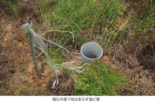 隕石が落ちた場所には現在、目印の塩ビ管が埋められています。