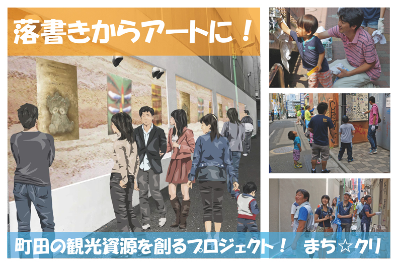 10月13日(土)「まちクリ~町田クリーンアップ作戦~」が開催されました。210名の市民が参加し、町田中心市街地の落書き消しを実施しました。同日「まちだアルタミラストリート」のお披露目も行いました!皆さまからご支援いただき、 落書き跡をスペイン アルタミラ洞窟壁画をテーマにしたアートギャラリーに チェンジすることができました。ありがとうございます。 まちクリにご参加いただいた皆様 朝8時の受付に間に合うように、落書き消しの道具を用意しました。 FC町田ゼルビアのゼルビー君も参加。 石阪市長は開会式から閉会式までご参加いただきました。もちろん落書き消しにもご参加いただきました。ありがとうございます。 中心市街地のいたるところに落書きがあります。 エリアごとに班に分かれ、落書きを消しました。 まちだサポーターズさんにもご参加いただきました。 落書き消しに使用する「消せる君」(溶剤)は植物由来の天然成分が配合されています。「消せる君」は町田市さんから協力いただいています。足りない班にはバイクで補給しました。落書きのほかにステッカーが多く貼られています。 ステッカーはヘラを使ってはがします。 大きな落書き。建物の所有者に事前に承諾をいただき、落書きを消します。 ペスカドーラ町田さん、まごころ清掃社さんの班でこの落書きを消しました。近くで早く終わった班はこの班に合流し落書き消しを手伝いました。 落書きを放置せず消すことで、まちの体感治安が変わっていきます。 ドン・キホーテ町田駅前店横に現れた「まちだアルタミラストリート」看板。暗くて人通りが少ない路地が、ストリートギャラリーに変わりました。町田・デザイン専門学校の生徒さんの作品の間に、アルタミラ洞窟壁画の写真を作品として掲示しています。画像データはアルタミラ洞窟博物館、スペイン政府観光局よりご提供いただきました。 ギャラリーの様子 受賞作品は以下の8作品です。 近くにお越しの際はぜひ「まちだアルタミラストリート」にお立ち寄りください。「変わりゆく町田の街並み」さんのサイトの記事https://kawariyuku-machida.com/article/15689.html?fbclid=IwAR1XipR7a33Ov7mMN8r46UPgRLp1q0KRYahGqt3ooBqOg4RTyvZrE7CjIO4