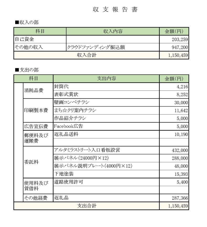 計画に対し収支が以下のとおりとなりましたので報告いたします。