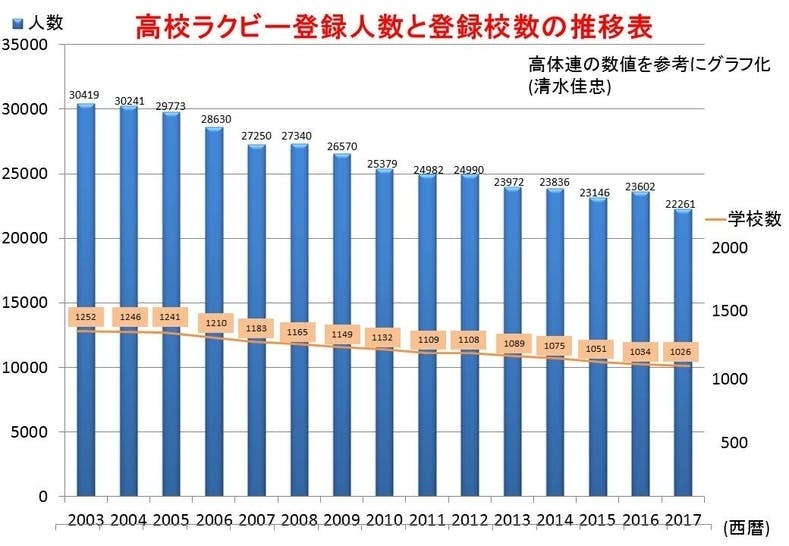 これからの国内におけるラグビー人口については、2011(平成23)年で12万2,368人のデータを基に、日本ラグビーフットボール協会は、2020年までにラグビー人口の目標を「20万人」と掲げておりますが、先ほど述べたとおり、少子化や若年層のスポーツ離れ・他競技種目への人気集中などの影響を鑑みると、20万人はハードルが高い目標になっているようです。