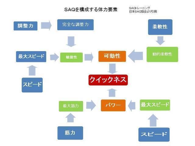 SAQトレーニングという名称は、スピード、アジリティ、クイックネスの頭文字に由来します。
