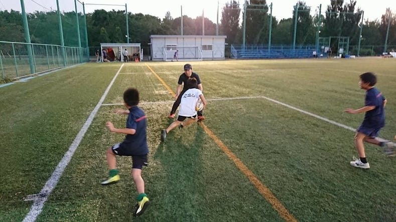 明日の大会の会場となるグラウンドでちょっとした練習!