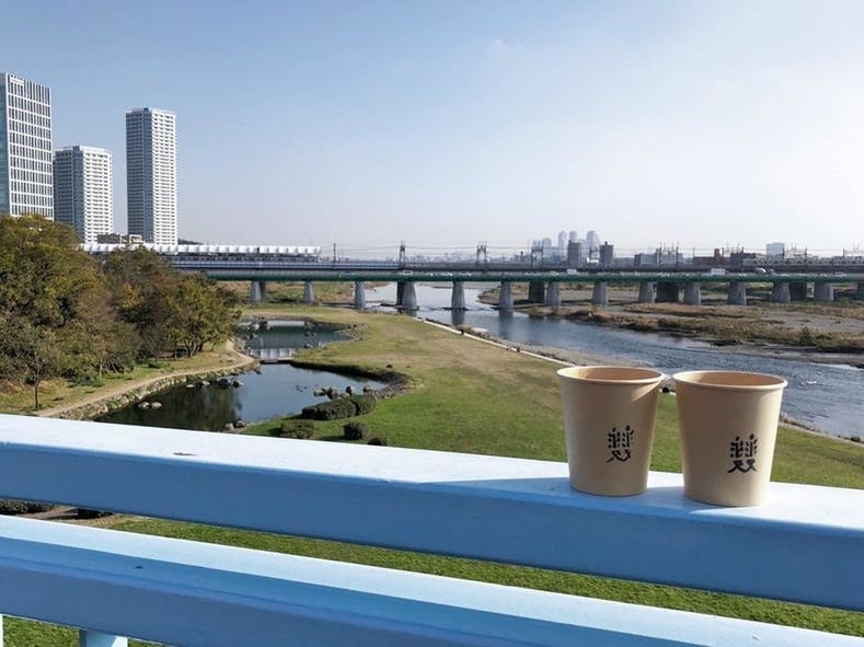 ランチタイムはドリンクも持ち出せるので、食後はすぐ近くの多摩川を見ながらのコーヒータイムもまた格別!