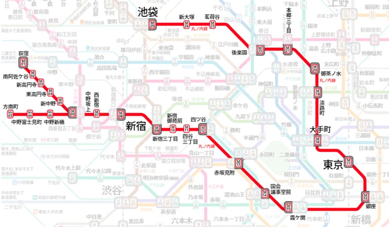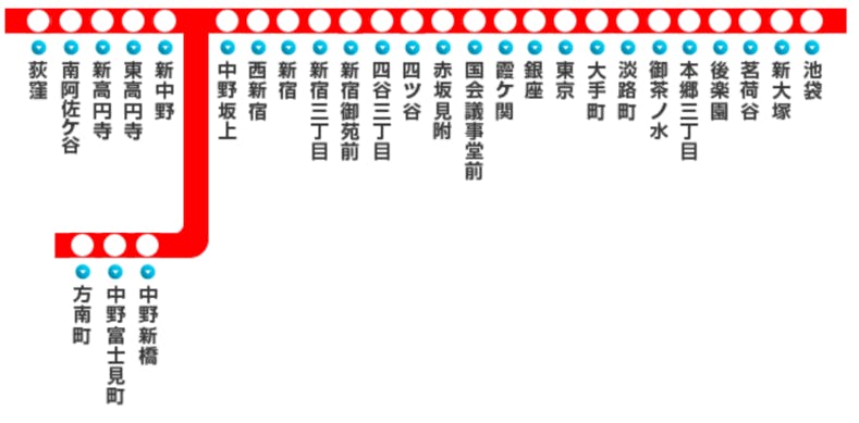 たとえば、東京メトロ丸の内線の路線図といえば、下図のようなものを思い浮かべる方が多いはずです。
