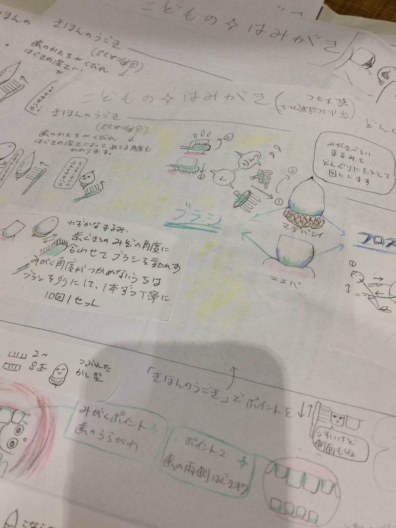 歯磨き絵本の作成が進んでいます。図書館司書とデザイナーで絵本の詳細について打ち合わせしました。絵本に付属する「歯磨き手法図解ポスター」と「歯磨きカレンダー」の構図についても確認しました。