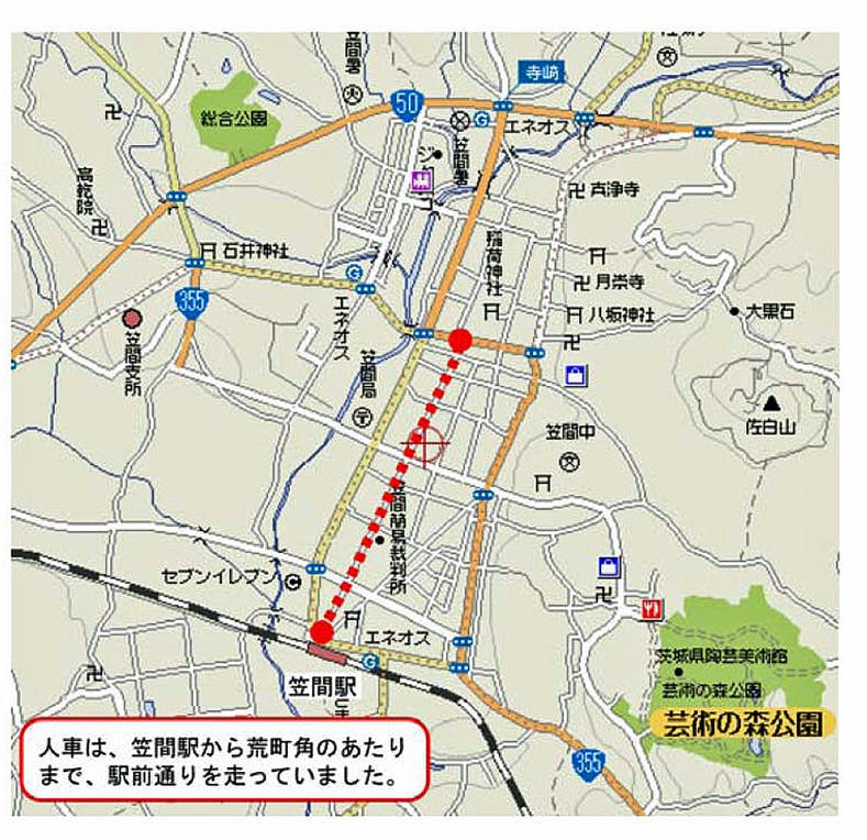 できるだけ、大正時代に笠間人車軌道が運行されていた駅前通りの沿道での展示を検討します。