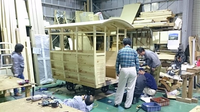 住民の手で大正時代と同じサイズ、同じ種類の木材、同じ車輪サイズで本格復元を行います。