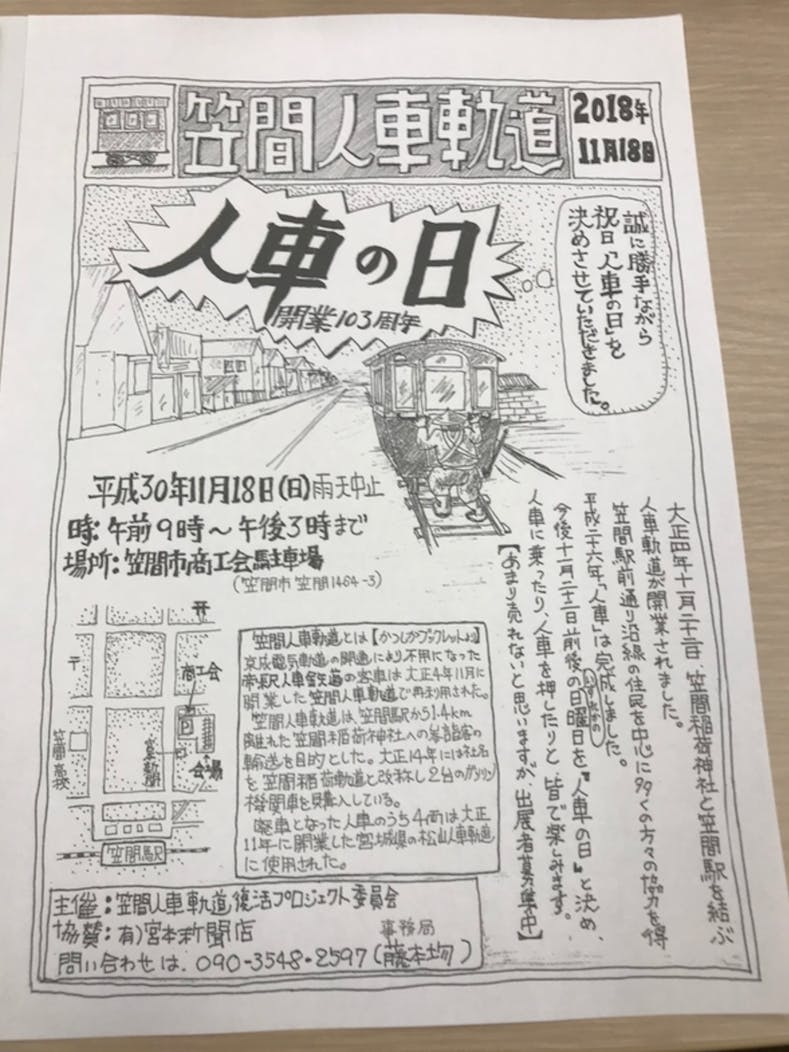 以下のチラシは、2018年の人車の日のイベントの内容です。