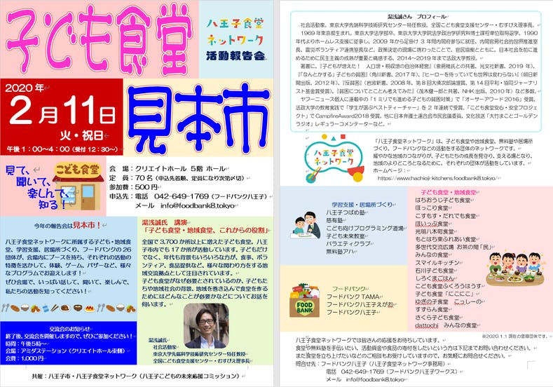 八王子食堂ネットワーク活動報告会「子ども食堂見本市」のご案内
