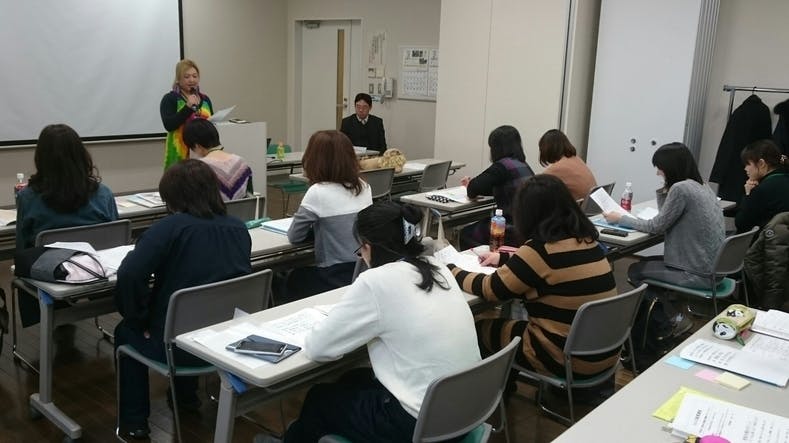 ↓蕨市の創業講座。みえこさんが発表中。
