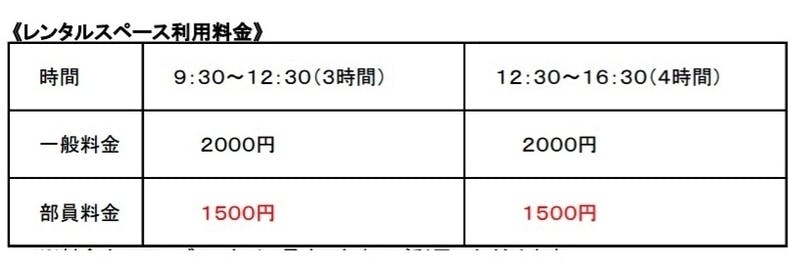 ●flagsflag倶楽部 部員メニュー&レンタルスペース料金表