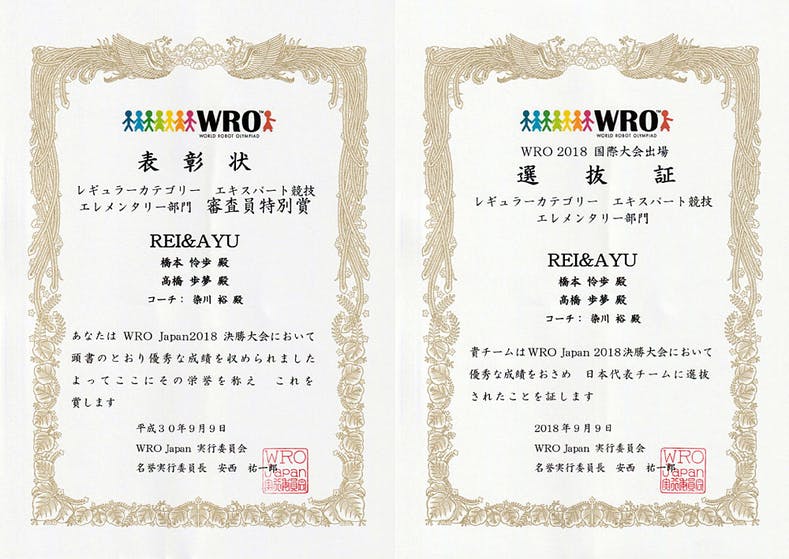 日本代表として、「REI&AYU」がタイのチェンマイで行われるWRO国際大会に選抜されたのです。