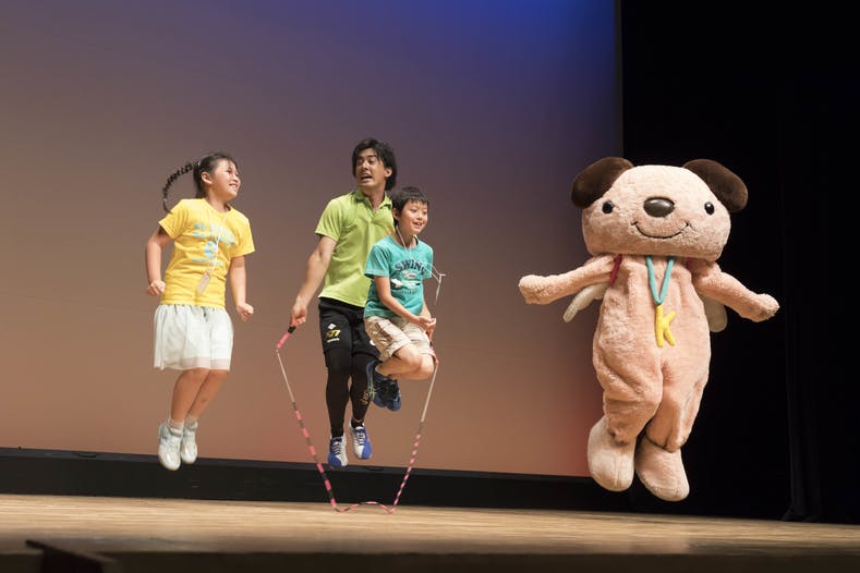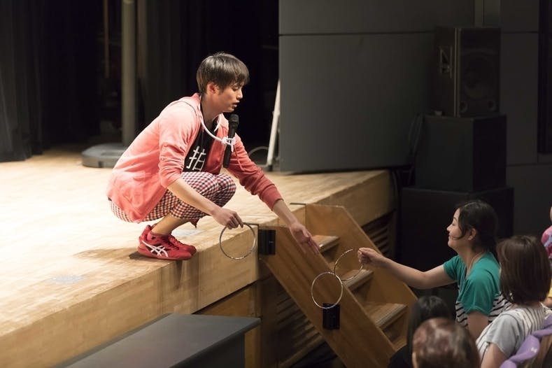 なわとびギネス保持者・マジシャン・大道芸人プロパフォーマー3名によるアクロバティックな技が登場!ワークショップでパフォーマンス技に挑戦してみよう!