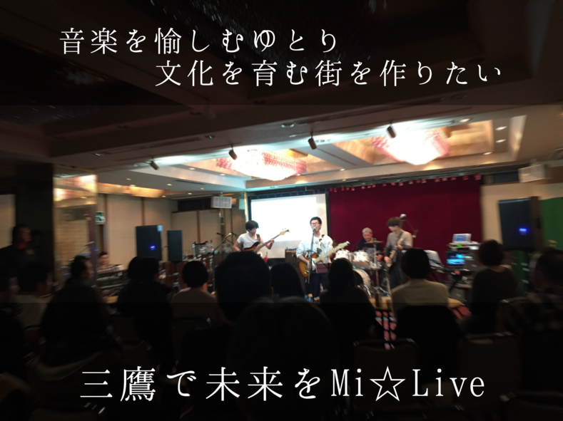 三鷹駅前中央通り南側の商店街(三鷹南銀座会)では、お祭りの時に音楽や演劇やダンスのご披露の場として過去3年間にわたり、屋外に舞台設営をおこなってまいりました。そこから音楽部隊がスピンアウトしいろいろくっついて活動範囲を三鷹に広げたものがMi☆Liveとなります。