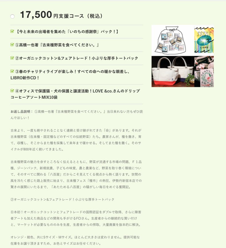しかもリターンで応援できるって!良かったですね!善きコトしかない!お母さんは、買ってくれはる人も平等な善きコトFOUNDERや、いうてはりますもんね。このボクのレポート読めた人、ラッキーやねーよかったねー!!