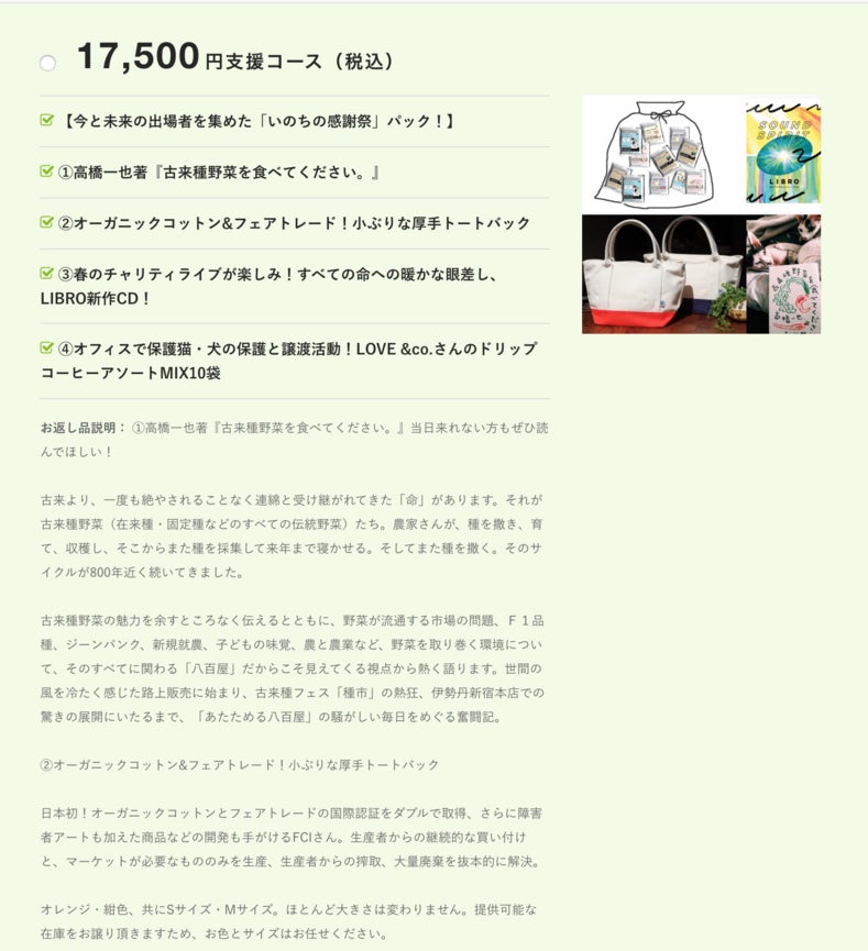 ほな、とりあえずこのね、ミニトートのリターン買ってくださいね!!ボクとお揃いでね!!!