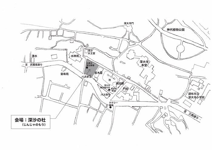 今回はその深大寺さんから許可を得て、境内の一角にある「深沙の杜」のスペースを1ヶ月ほどお借りできました。屋外なので雨の日には作業ができませんが、とても広くて緑豊かな、気持ちの良い空間です。4月の第1〜第3の土曜日にワークショップを開催する予定ですので、ぜひご参加ください!(雨天の場合は、日曜日に延期予定)ワークショップの詳細については、おってレポートでお知らせします!