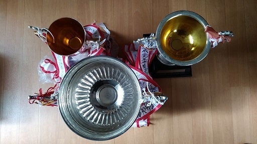 所属チームは、かつて市内でも弱小チームで、抽選会では対戦相手にガッツポーズされたという伝説?を持つチームでした。が、歴代監督・コーチ・母集団の粘り強い指導および団運営への協力が奏功し、近年やっと強豪と目されるようになりました。縁遠かった優勝カップも今やこんな感じです。