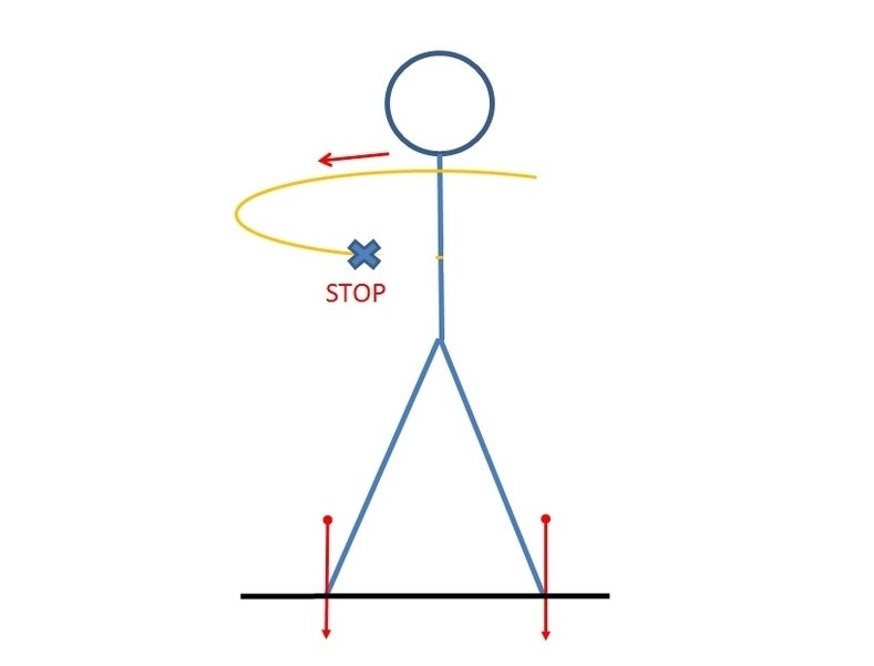 ここで、前足に軸を作って回るウエイトシフトが登場します。そもそも身体の前側の筋肉はブレーキだと言われていますから、筋力がなくても止まることはできるのです。対して後ろ側はアクセルですから、前に出て行くのも、無理はないと思います。