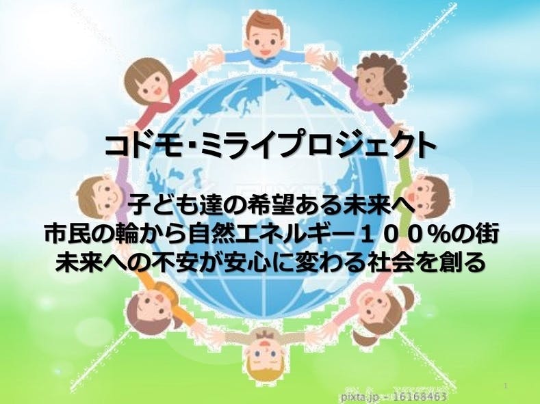 子ども達の希望ある未来へ 市民の輪から自然エネルギー100%の街 未来への不安が安心に変わる社会を創ります