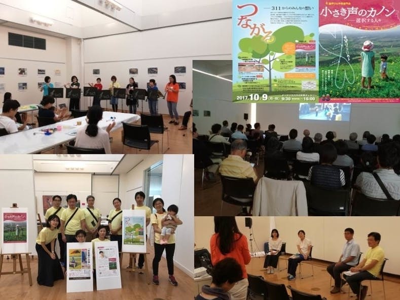 「小さき声のカノン」上映会☓トークセッション×311アート×コンサートのコラボイベント。みんなで「笑顔」で311の問題に向き合う場。なんとなくの不安や想いなんでも話しあえる場。新たな多くの市民の繋がりが生まれました。