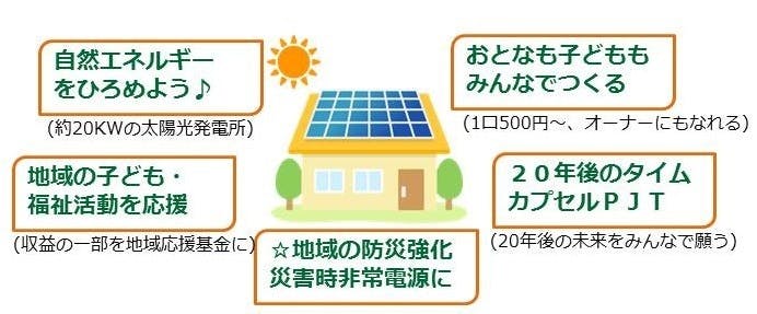 売電収益の一部を「地域・コドモ応援基金」として、地域の子ども・福祉活動に寄付、地域に還元します。