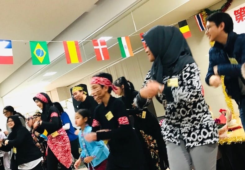 留学生や外国人ボランティアの方々と一緒に文化交流をします。国籍も年齢も様々。みんなで日本や前橋のことを話し合ったり、それぞれの食文化を体験したりことでお互いの文化に触れ合います。ダンスにも挑戦!