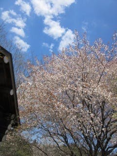 この写真は、4月13日の桜です。この山桜、花びらに取って代わり、すぐに赤い葉っぱで枝を覆うのです。なんとも不思議な舞台の早変わりのような