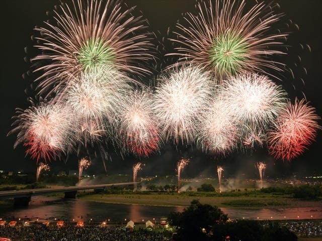 前橋花火大会:利根川大渡橋南北河畔緑地 ※駐車場:約5543台(無料)