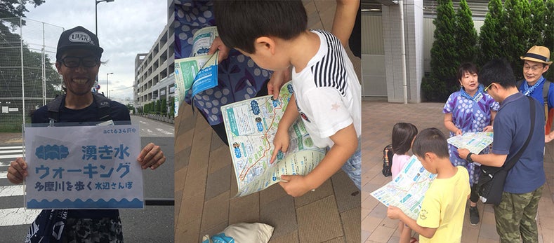 ・実施するイベントを市民自ら企画し、自ら実施し、自らも楽しみます。また、当日のイベントにたくさんの市民に来ていただき、その日の思いを記念にできるよう、オリジナルのTシャツ(ミズベリングTシャツ)を作成します。ミズベリングTシャツを市民が日常で使うたびに、「水辺をもっと身近なものに」というメッセージが伝わり、また多摩川に意識を向けることを促します。