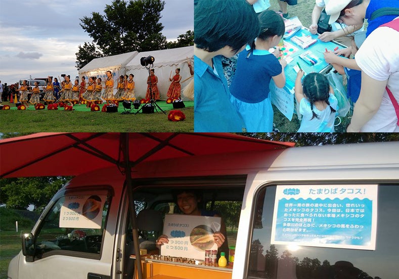 ・多摩川や多摩川の周辺の自然を体感していただくための試みをいくつも実施します。例えば、多摩川に注ぐ湧水の流れを追うお散歩マップを作成して自由に歩いてもらったり(今年はスマホアプリを活用したクイズラリーも実施!)、蓮池の蓮の葉をストロー代わりに使って飲み物を呑んだり、用水でざりがに釣りや笹船流しをしたりなど、市民が直接水や自然に触れ合える機会を多く作ります。また、ドローンを使った空撮、水辺のライトアップで当日新しい多摩川の見え方、景観資源としての価値を提案します。多摩川や水辺、自然の価値を改めて再認識してもらうことで、より府中市民が多摩川を身近に感じてもらえるようになることを期待して実施します。また、今年は飲食関係も充実♪♪楽しいイベントになること間違いなし!