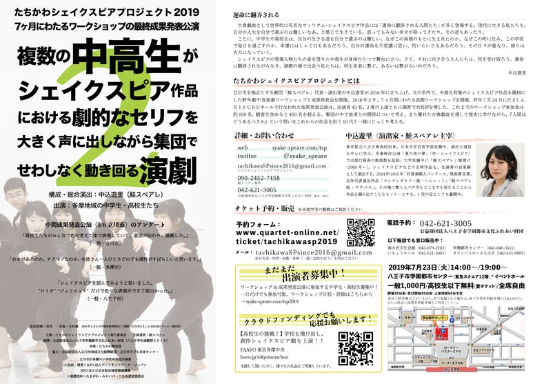 【中高生のためのたちかわシェイクスピアプロジェクト2019】