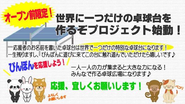 また、5,000円以上ご支援くださった方には、お店で使用する卓球台にお名前を記名させていただきます!!