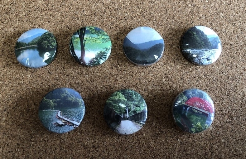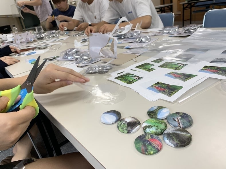また、ゼミ生の撮影した奥多摩町の風景の写真を使い、一つ一つ手作業で缶バッジを作成しました。