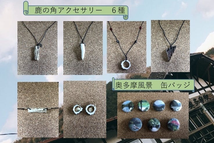 ガチャポンの中身は、お土産となる”奥多摩町で採れた鹿の角”を使ったオリジナルのアクセサリー(ネックレス、イヤリング、ブレスレット)、奥多摩の風景缶バッジのいずれかと奥多摩町の施設で使えるクーポン券の入ったガチャポンを設置します。