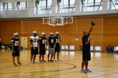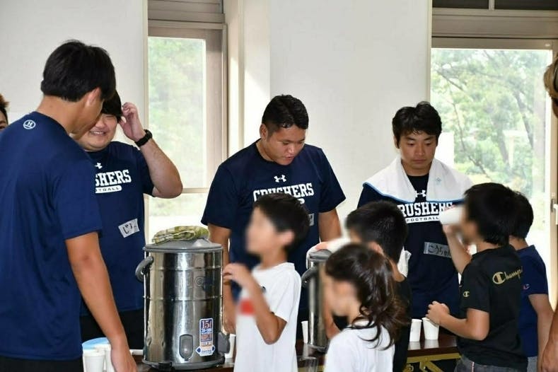 普段アメフトを見る機会はなかなかない子供達は釘付けです。