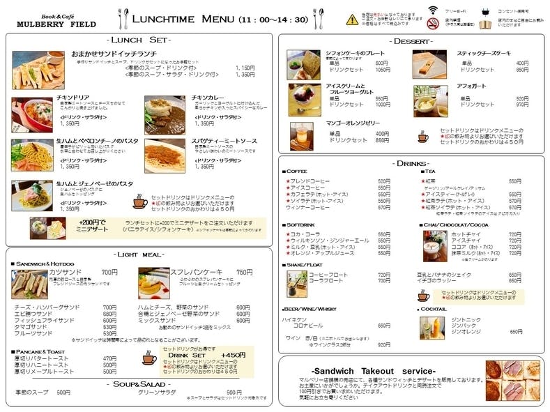 ※ランチセットにはサンドイッチやパスタ、カレーやチキンドリアなどを取り揃えてお待ちしております。