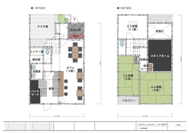 また2階にも水回りや給湯コーナーを設け、宿泊者の利用に配慮します。