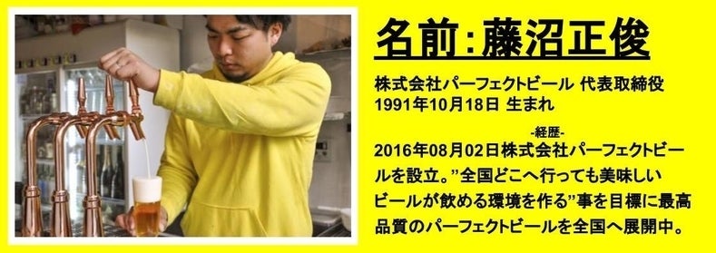 はじめまして。株式会社パーフェクトビール代表の藤沼正俊(27歳)と申します。3年前より所沢にてビール屋さんを経営しております。
