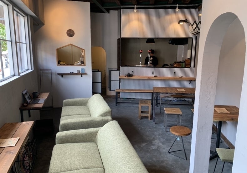 2Fのコワーキングスペースは6つの固定デスクと、12人ほど座れるフリーデスクと、4人座れるハイカウンターを用意します。カウンターにはビアサーバーも設置します。(スタッフがいる時のみパーフェクトビールの提供あり)