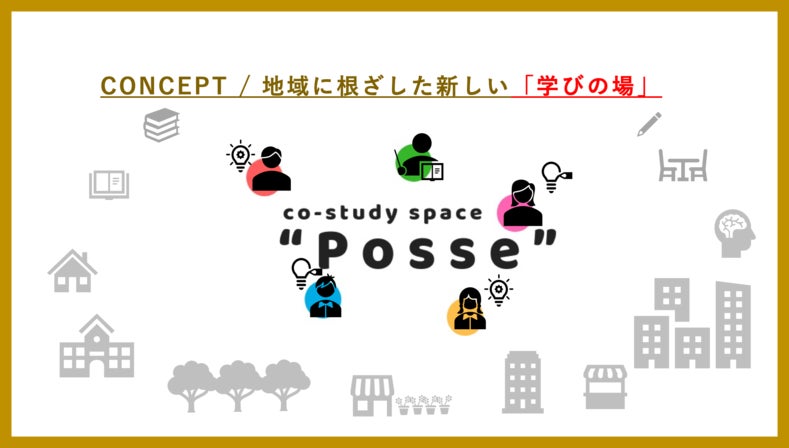 今回のプロジェクト、Co-study space “Posse"のコンセプトは、地域に根ざした第3の「学びの場」を作るというものです。