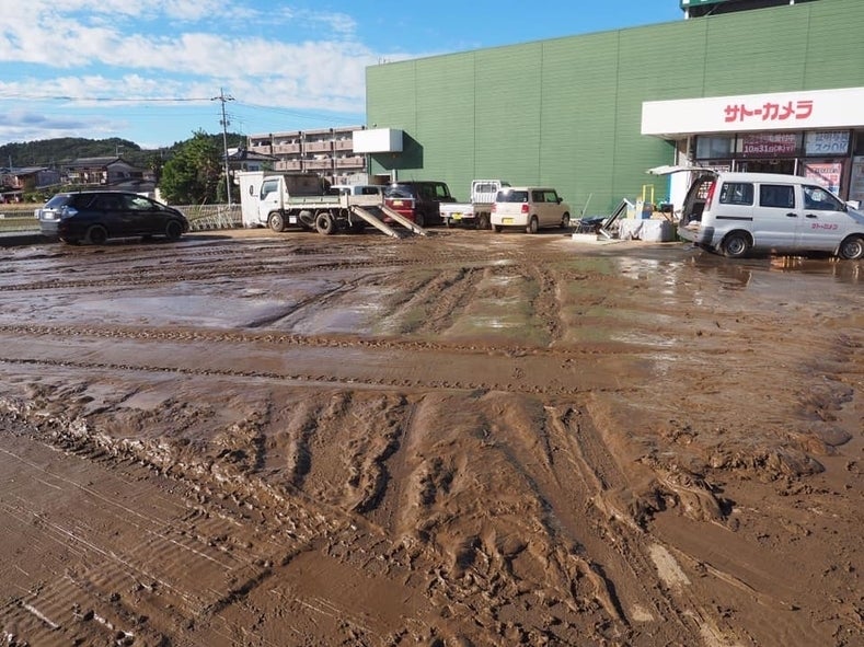 今回の台風19号で弊社のサトーカメラ 栃木バイパス店も被災しました。 永野川が氾濫し、濁流が押し寄せ、床上浸水しました。 翌朝、氾濫した川の泥が駐車場はもちろんフロア一面を覆い尽くしていました。