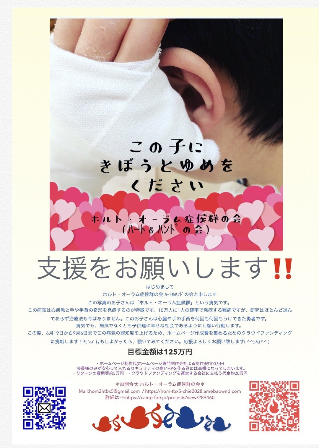 日本ではホルト・オーラム症候群の患者さんの正式な患者数を把握していないときいています。私がホルト・オーラム症候群を知ってから15年になりますが、